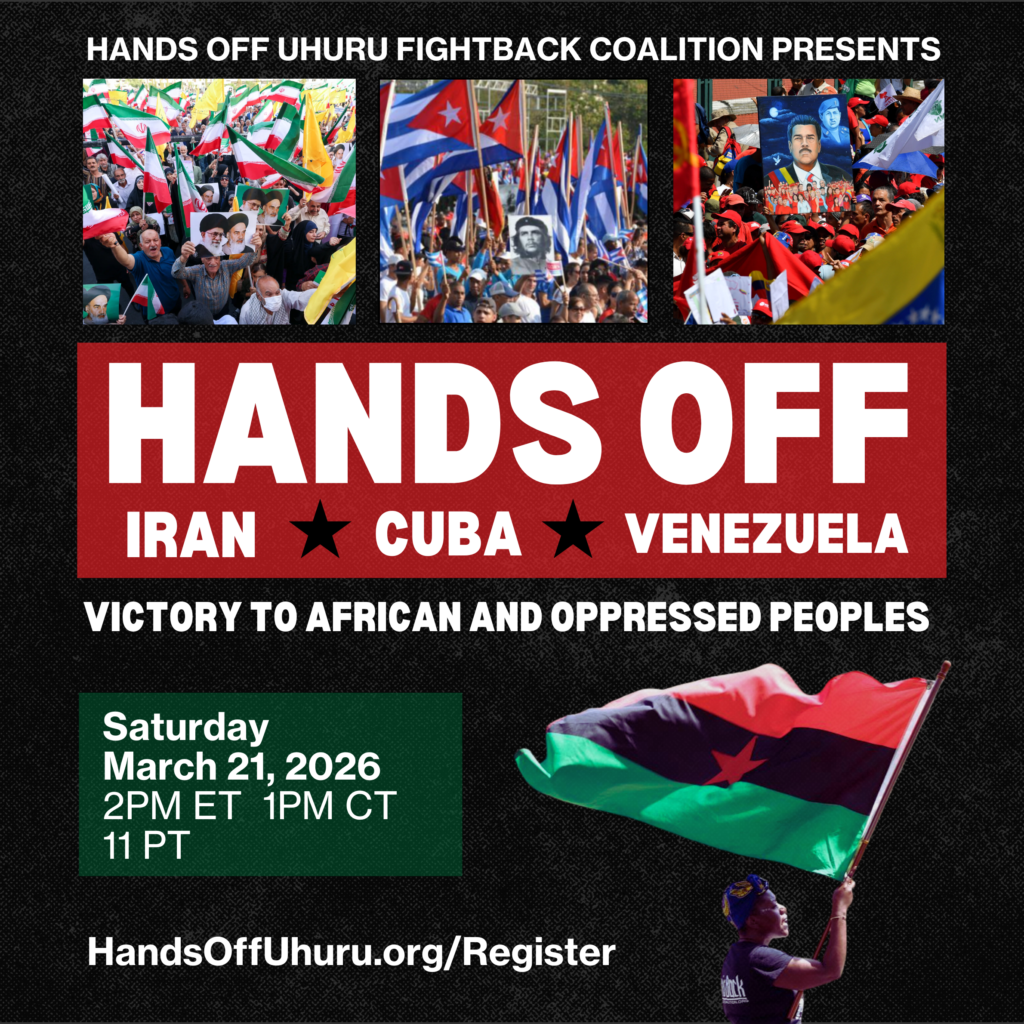 This urgent webinar hosted by the Hands Off Uhuru counteroffensive addresses the brutal U.S. bombings and attacks on the people of Venezuela and the kidnapping and arrest of President Nicolas Maduro and First Combatant Cilia Flores in violation of international law.
